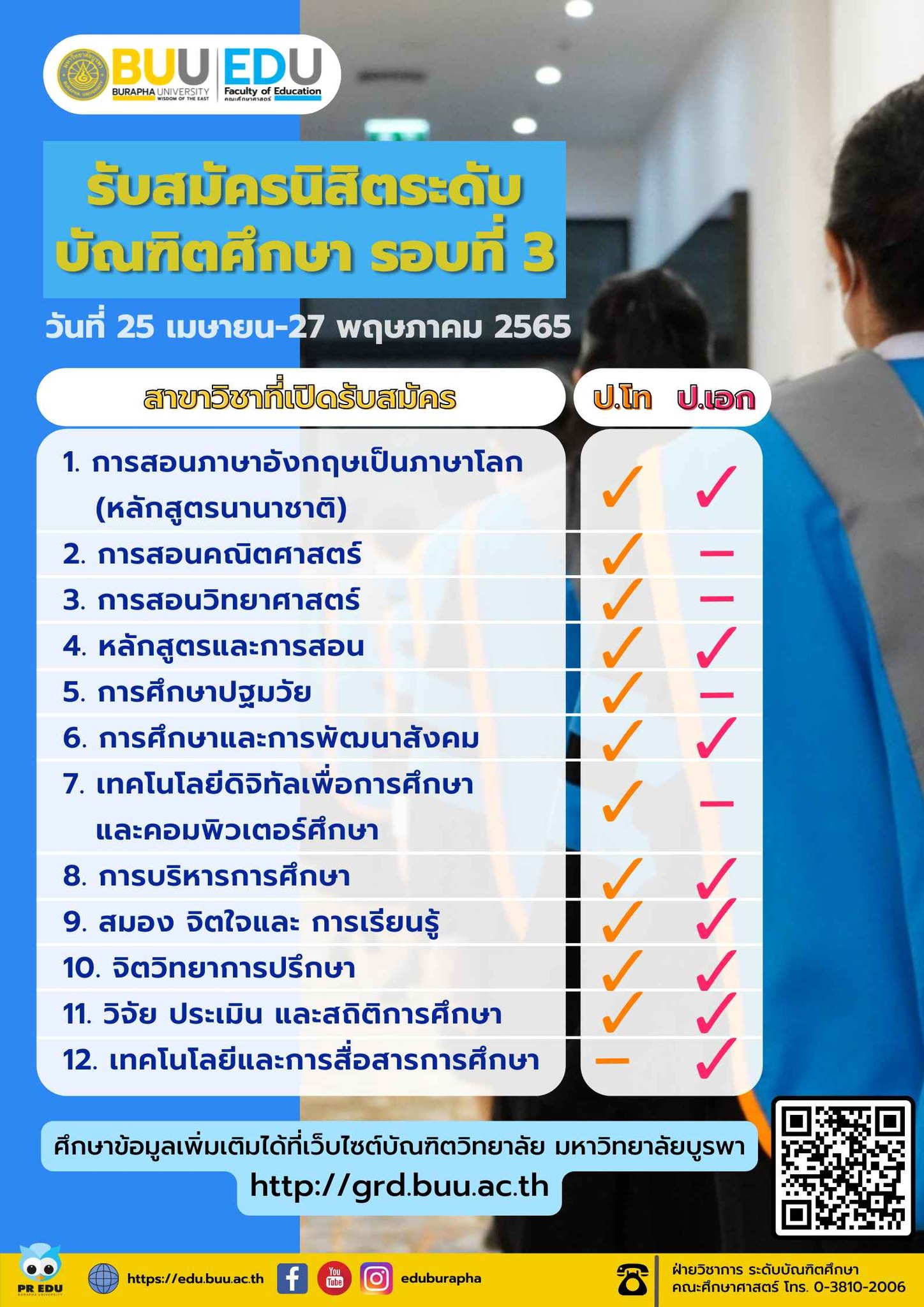 คณะศึกษาศาสตร์ มหาวิทยาลัยบูรพา เปิดรับสมัครนิสิตระดับบัณฑิตศึกษา ประจำภาคต้น ปีการศึกษา 2565